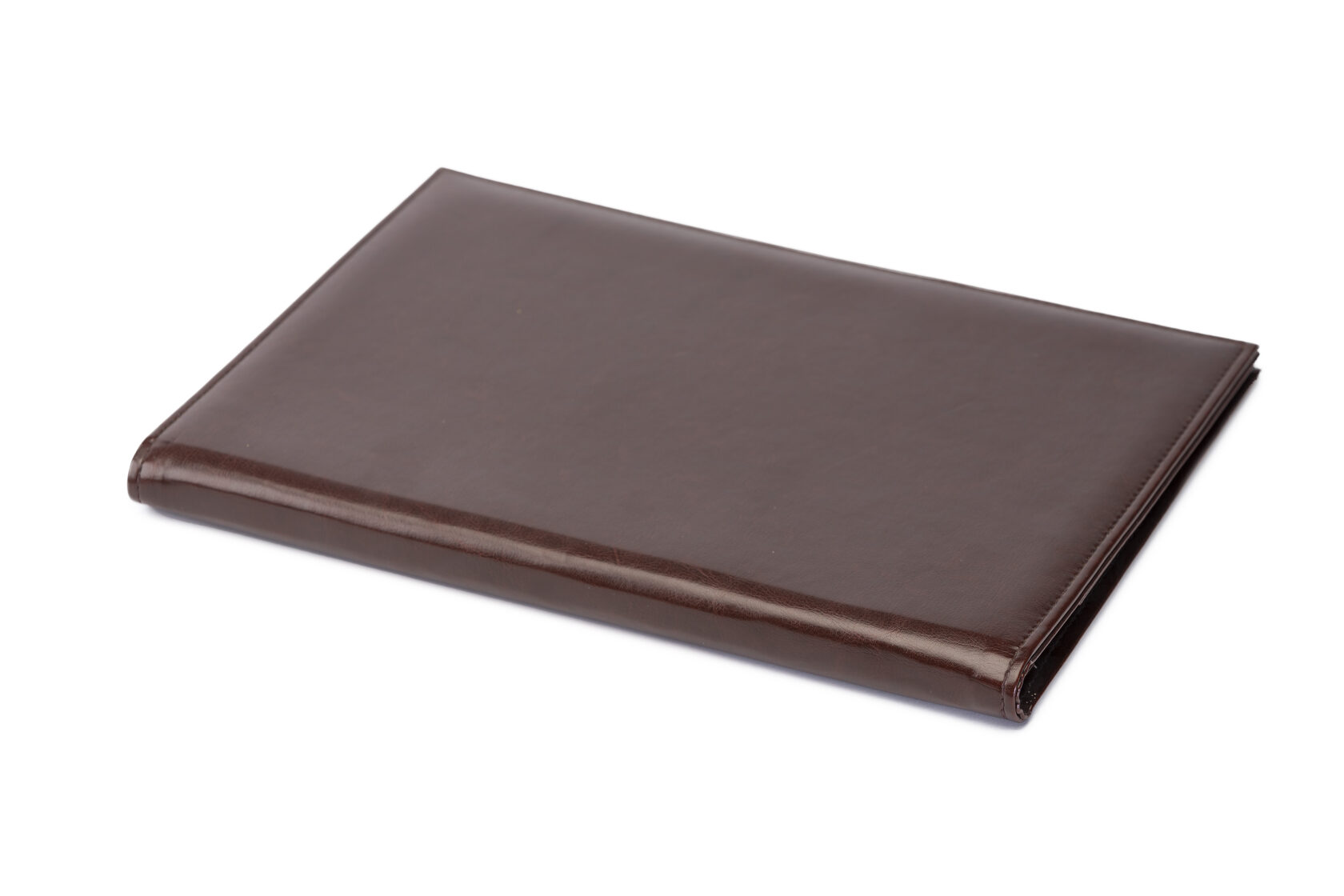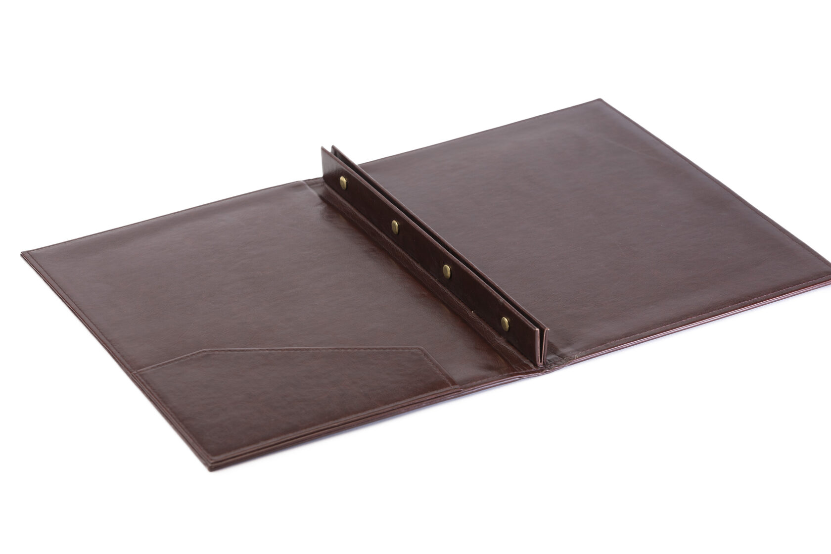 Папка из экокожи с креплением файлов или листов А4 на внутренние болты. Подходит для отелей в качестве "Книги Гостя", "Книги отзывов", для ресторанов в качестве папки "Меню". Цвета и фактуры искусственной кожи имеются в ассортименте. Возможно брендирование за дополнительную оплату.