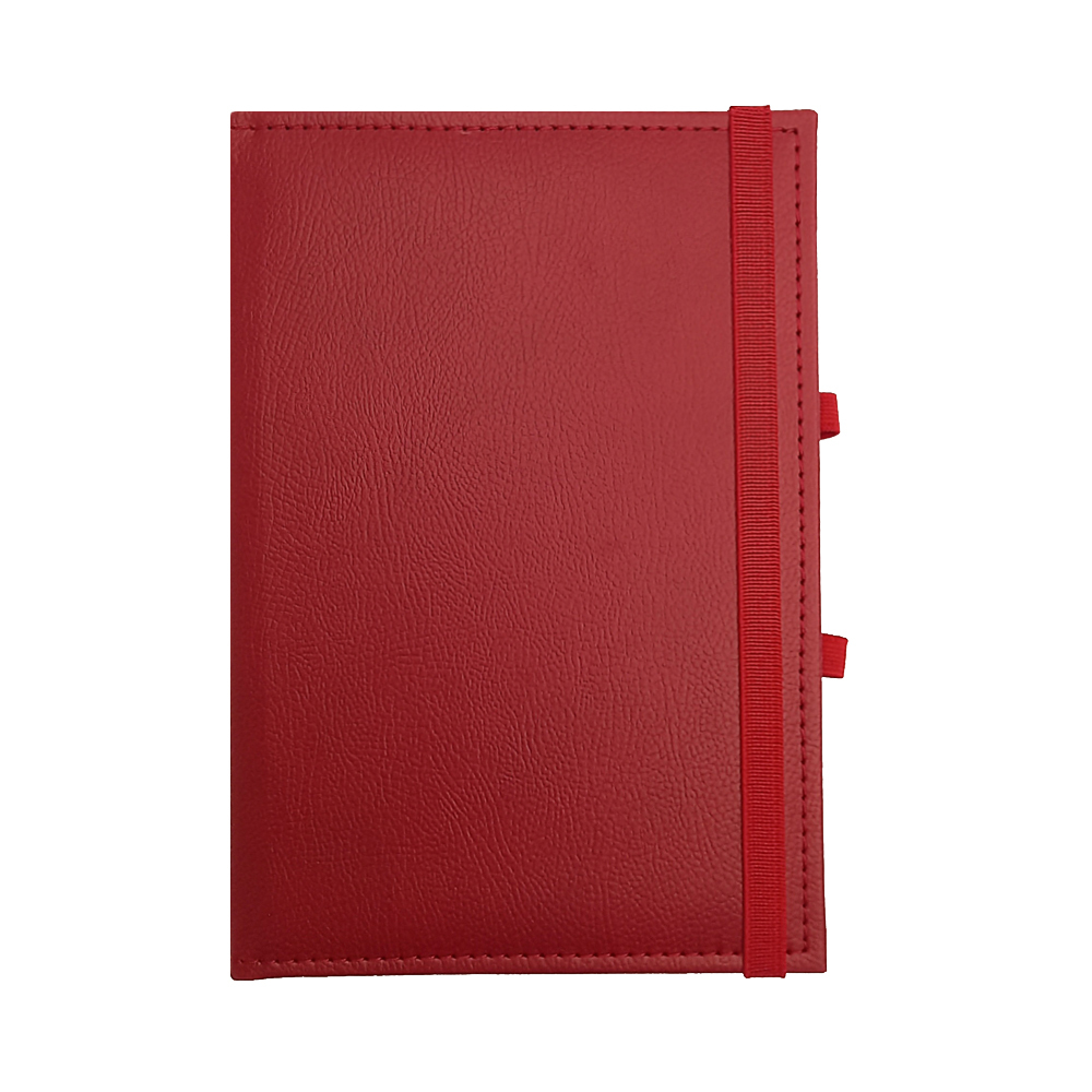 Твердый переплет с поролоном подчеркивает статус его владельца, а специальные резинки создают дополнительное удобство для пользования ежедневником. Стандартный блок из 256 страниц белого цвета с черной графикой содержит информационно-справочный раздел. Каптал-ляссе, отстрочка подобраны в цвет экокожи обложки. Внутренняя сторона обложки оснащена карманом из картона.