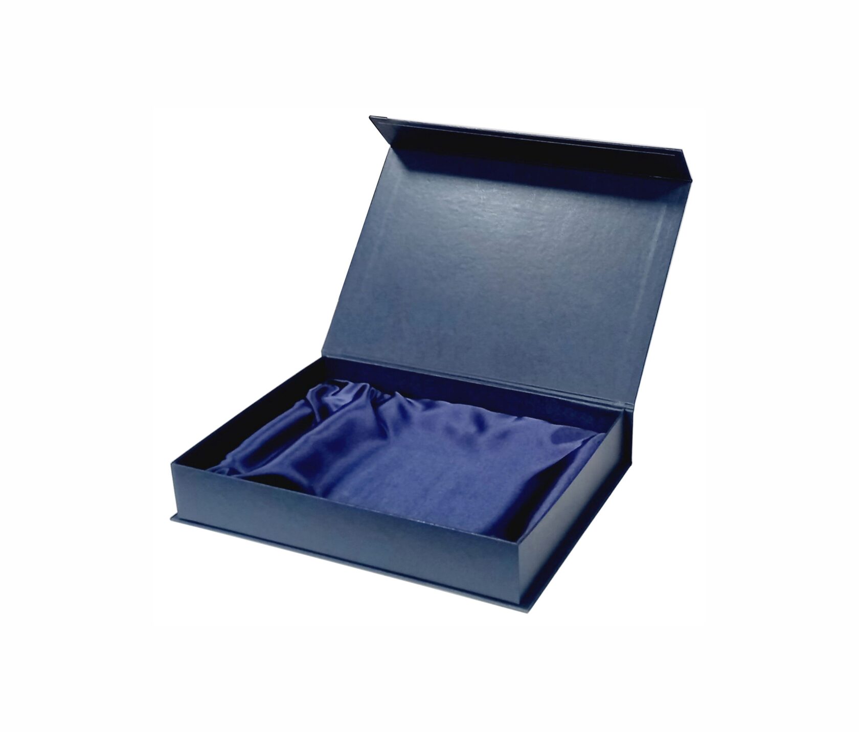 Размер 33х19,5х4 см. Коробка подарочная с магнитным клапаном с объемным ложементом с атласом синего цвета. Разработана для вложения ежедневника ф. А5 и ручки. Представляет собой деловое оформление подарочного набора. За дополнительную оплату возможно брендирование коробки, а также предоставление ежедневника синего цвета (софт-тач или другой фактуры) и ручки - по желанию с нанесением логотипа Заказчика.